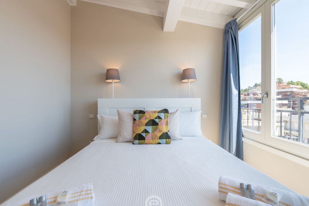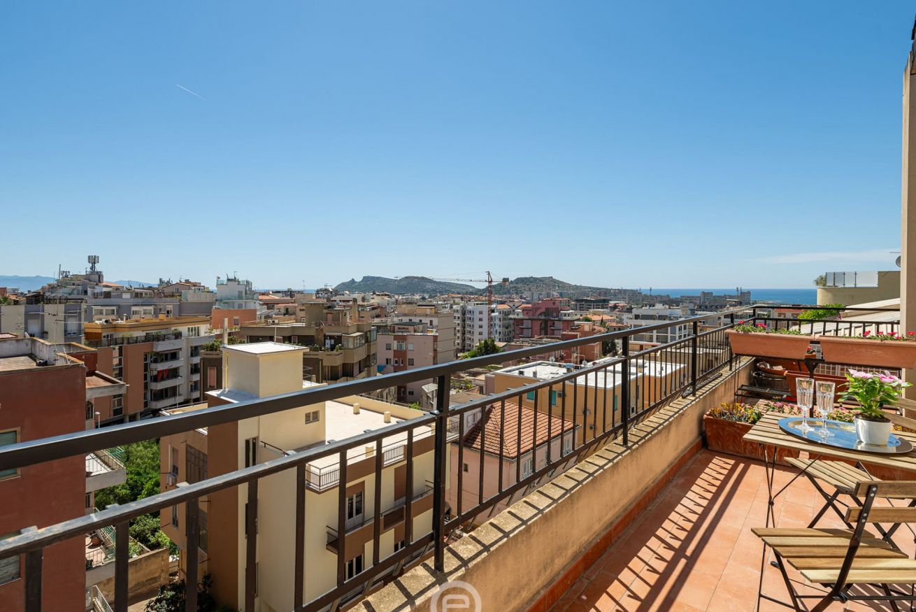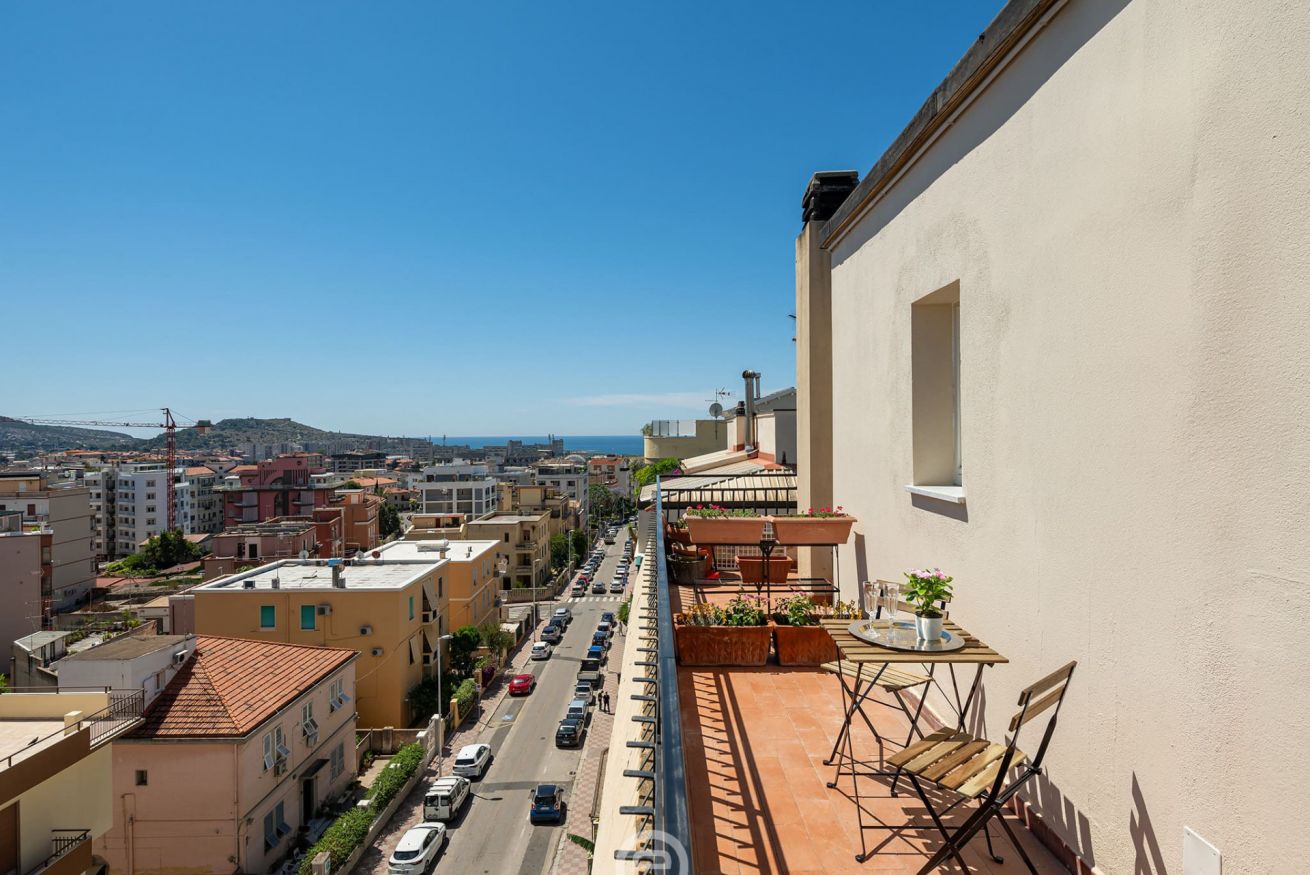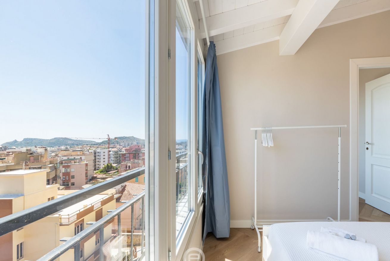 Elegant panoramic one-bedroom apartment on the sixth floor with elevator on Via Messina, Cagliari, tastefully and functionally furnished—ideal for a couple eager to explore Cagliari and southern Sardinia.