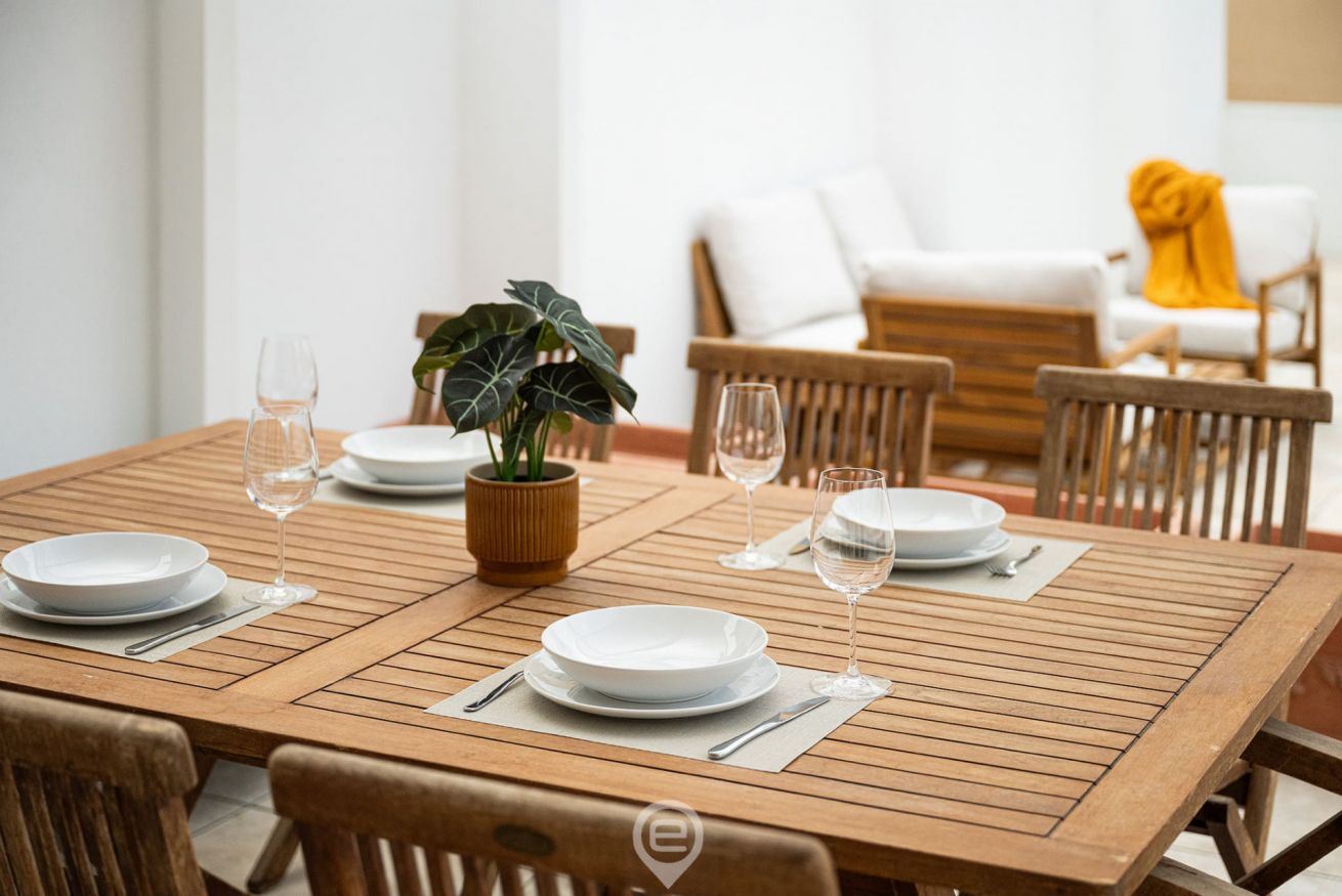 • 🌞 Private terrace furnished with table, chairs, sofas, and a canopy to enjoy outdoor moments