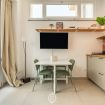 • 🛋️ Living room with sofa, smart TV, and dining area