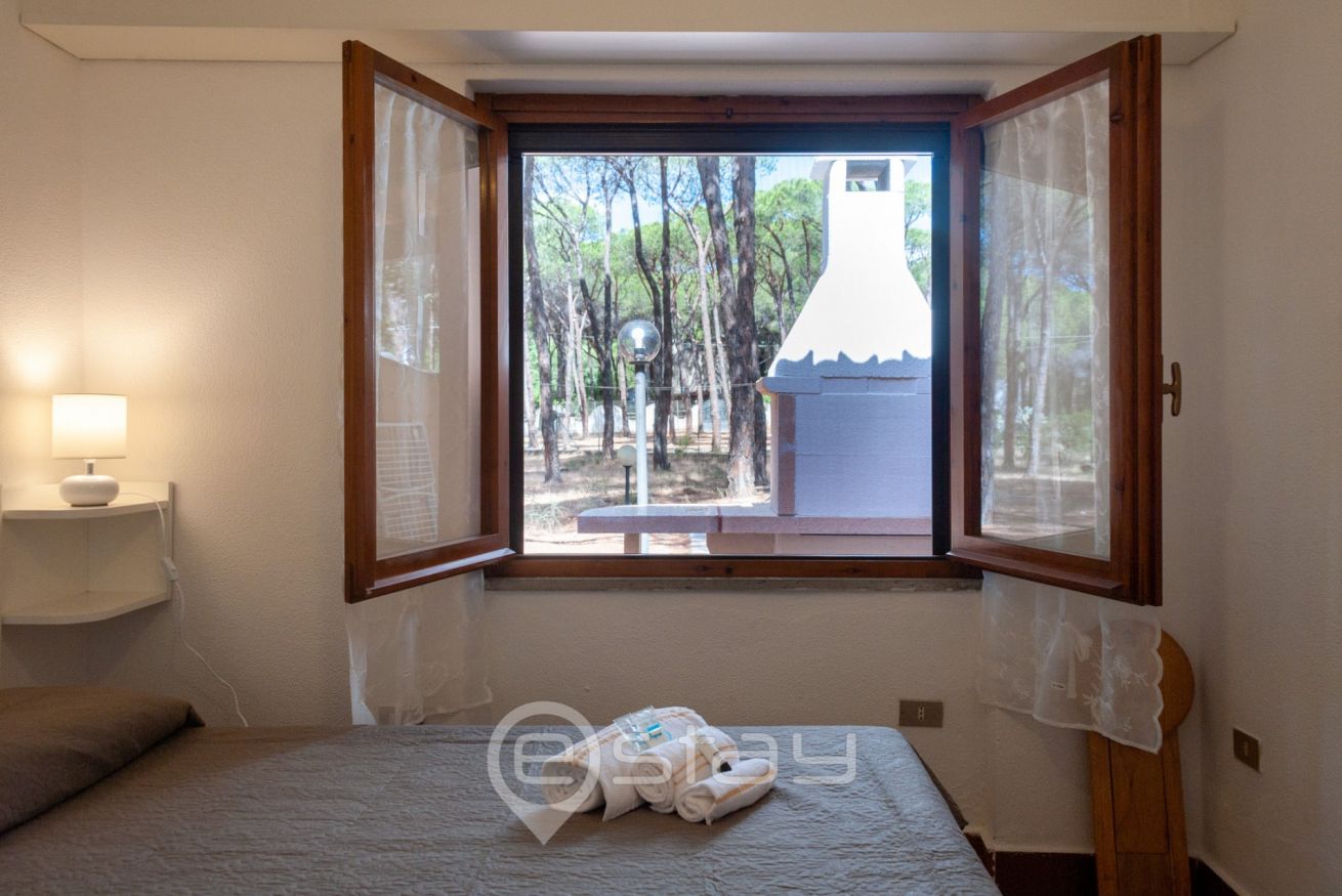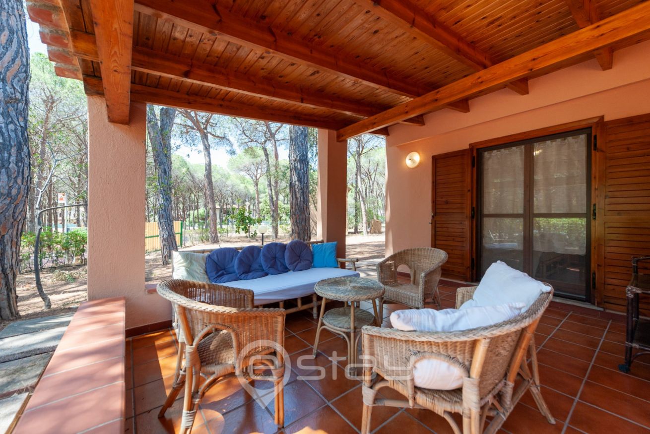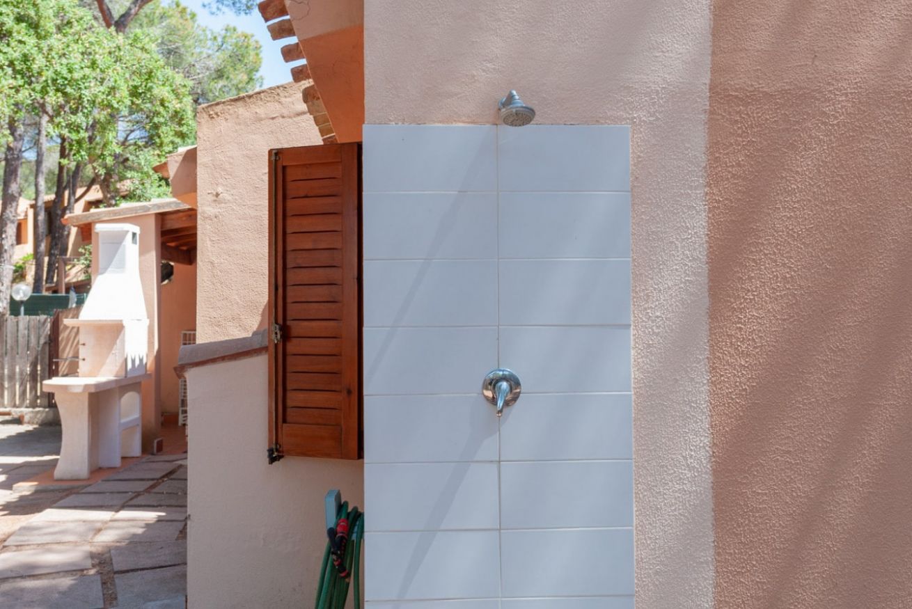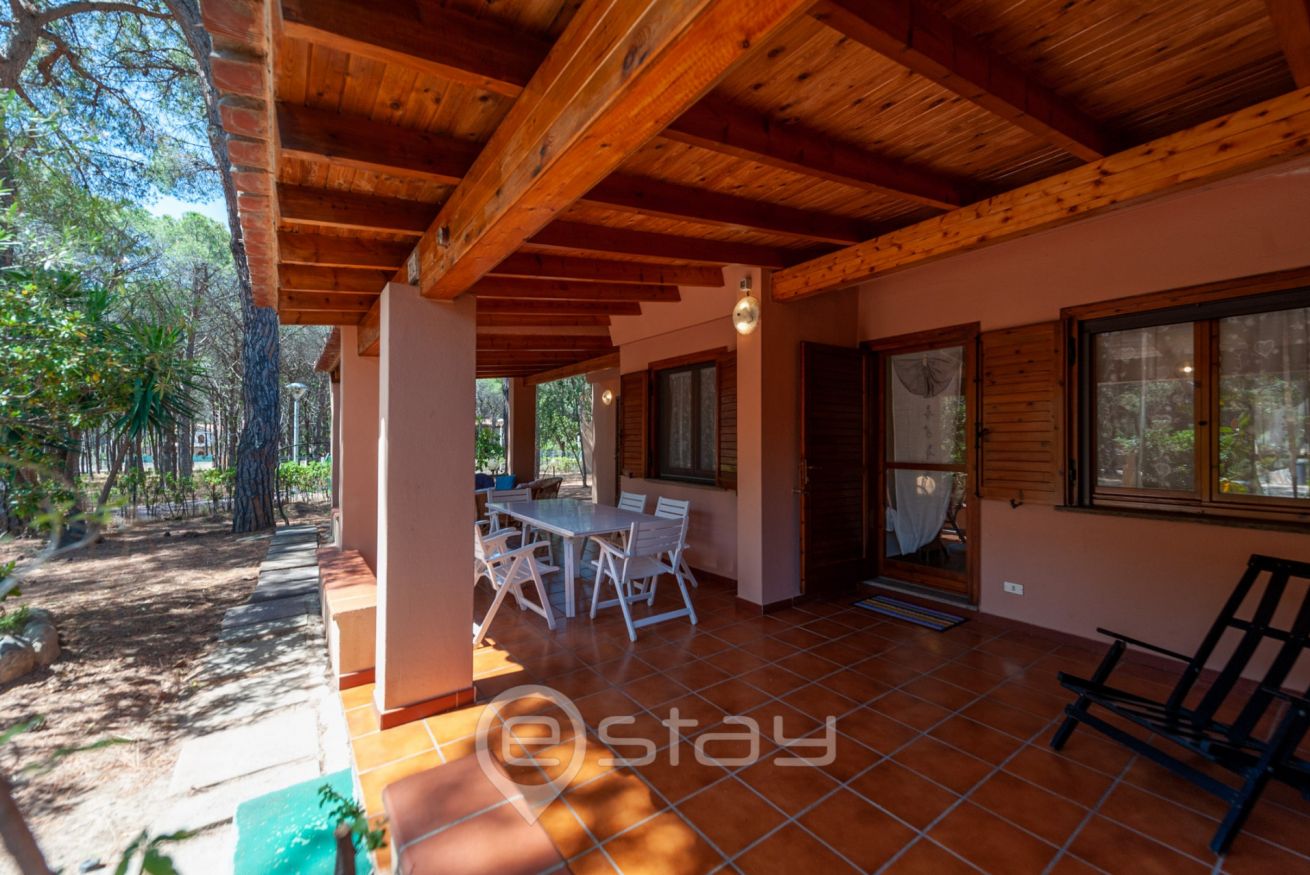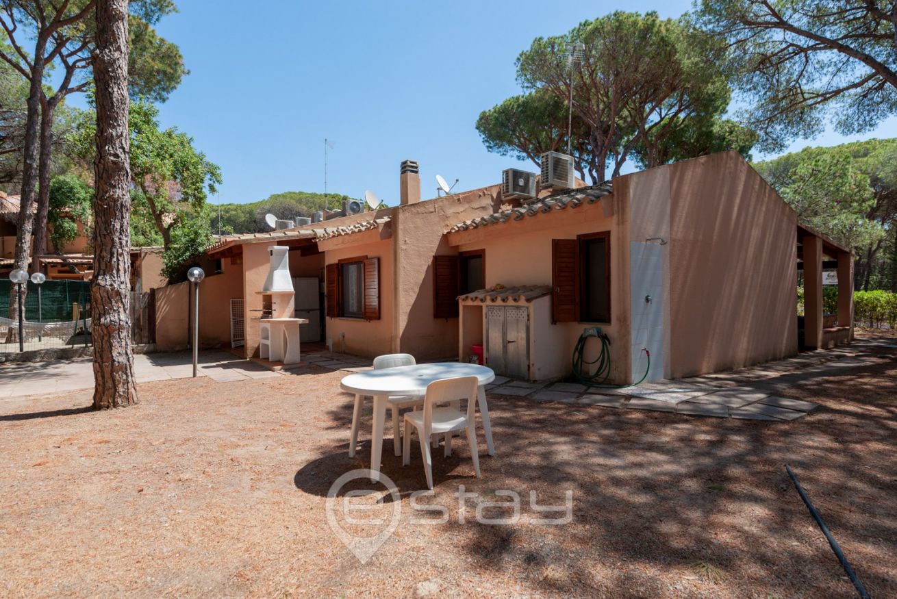 Spazi esterni e area relax: Il giardino privato è il cuore della villa, con arredi da giardino, doccia esterna e barbecue, l'ideale per momenti di relax all'aperto, circondati dal verde e a pochi passi dalla spiaggia.