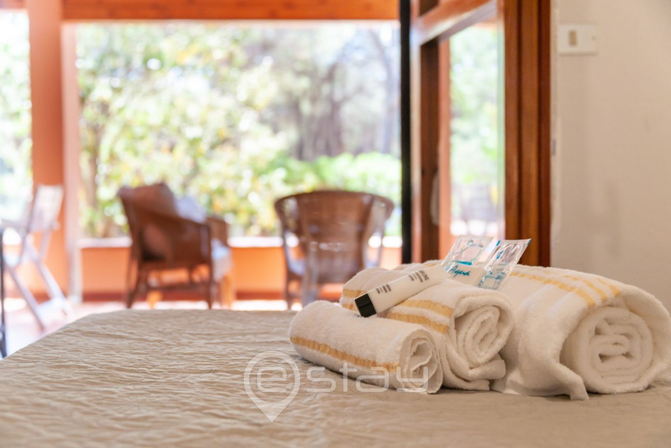 Zona notte: La villa dispone di tre camere da letto, due matrimoniali e una con due letti singoli. Ogni camera è pensata per garantire il massimo del comfort e della tranquillità, con biancheria da letto fornita.