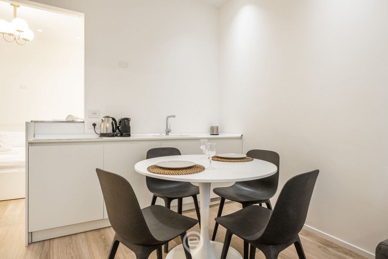 • 🍽️ Kitchenette equipped with induction hob, microwave, dishwasher and mini fridge with freezer, so you can easily prepare snacks or simple meals at home