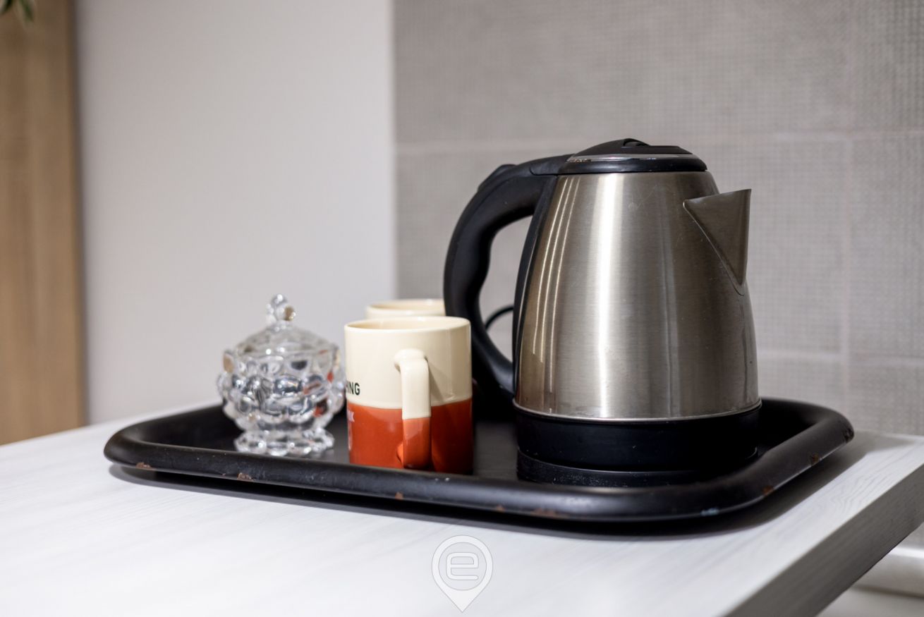 • 🍳 Angolo cottura con piano a induzione, minifrigo con freezer, macchina del caffè Nespresso e bollitore