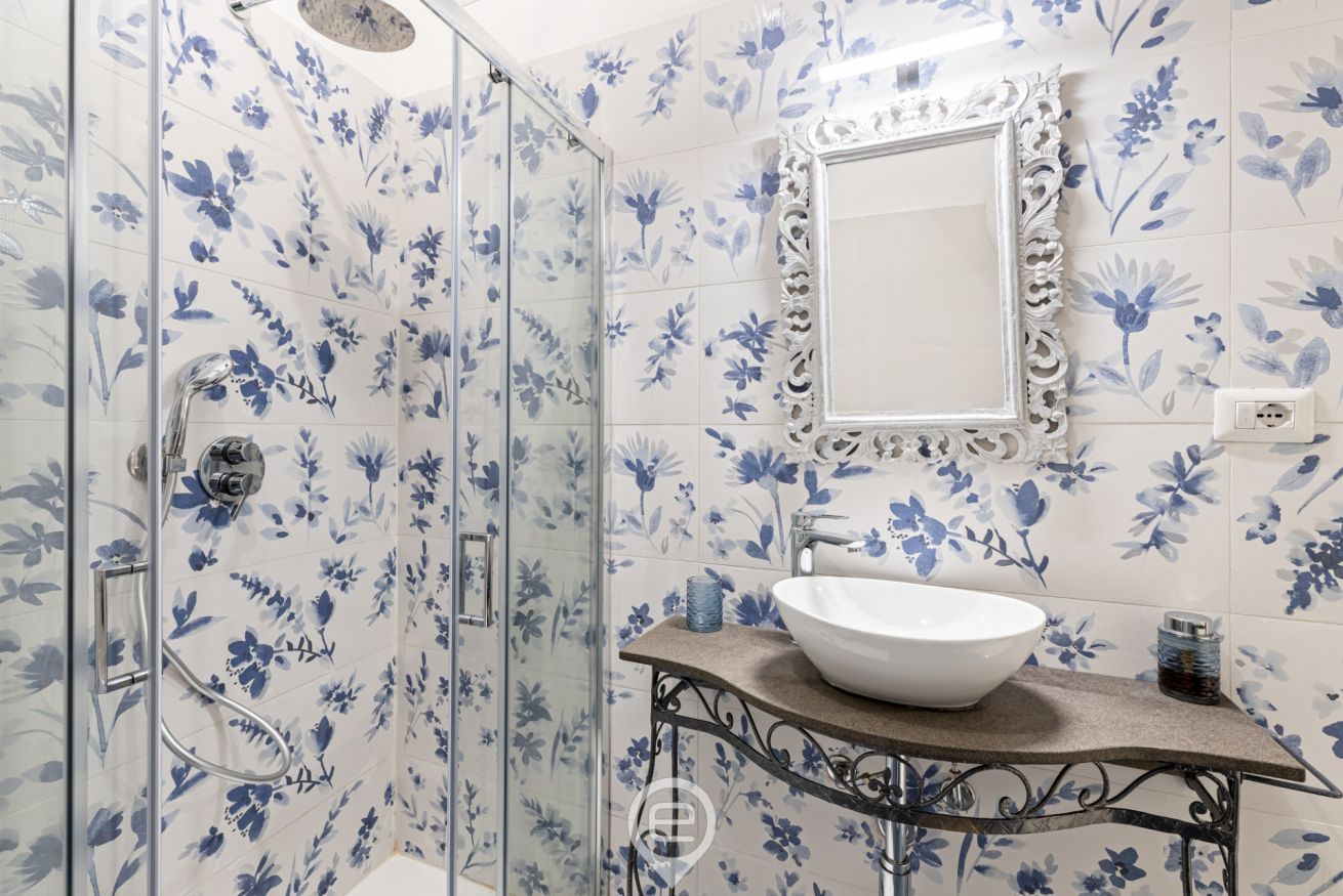 • Bagno con doccia, lavandino e WC