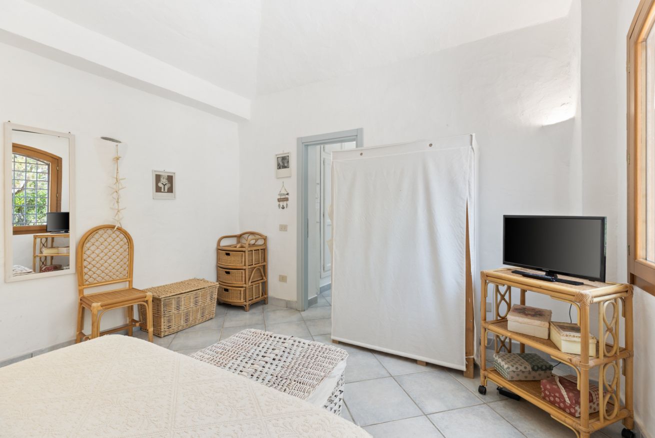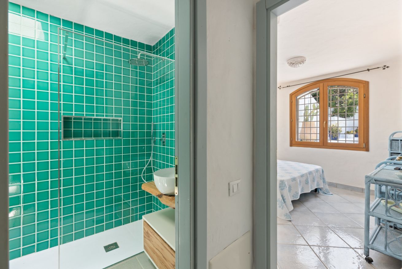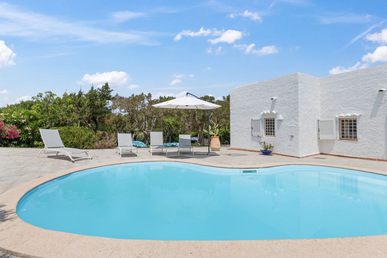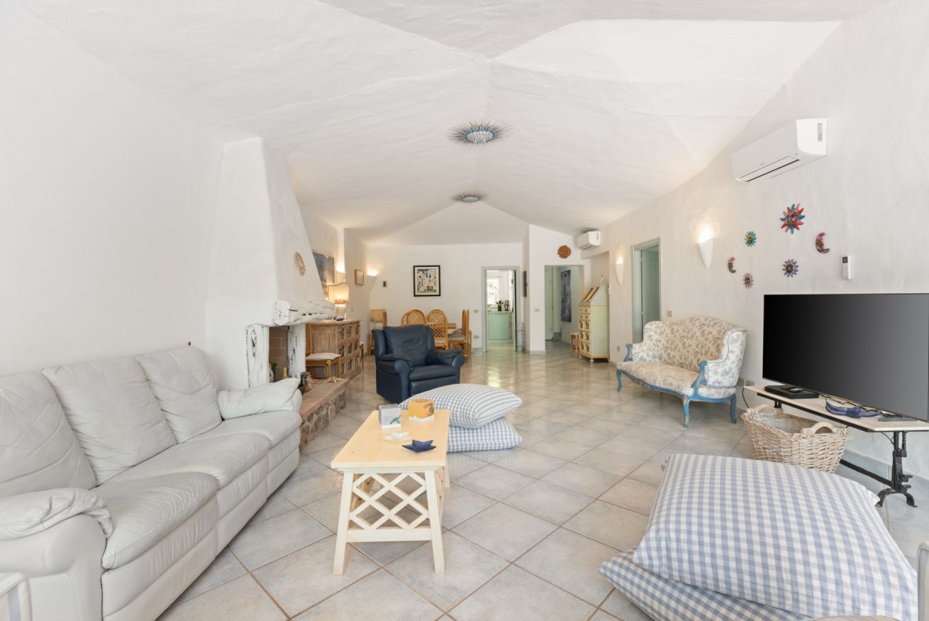This fully independent villa offers spacious, bright interiors, ideal for families or groups of friends. The four bedrooms are tastefully furnished and equipped with every comfort: two double bedrooms with air conditioning and TV—one of which features an en suite bathroom; a third double bedroom with private bathroom and TV; and a fourth bedroom with bunk beds and its own bathroom. The villa also features a large living room with comfortable sofas, a dining area, air conditioning, and TV, along with a modern fully equipped kitchen including an induction hob, oven, dishwasher, coffee machine, and kettle. The interiors are completed by three elegant and functional bathrooms with showers, plus an additional guest bathroom.