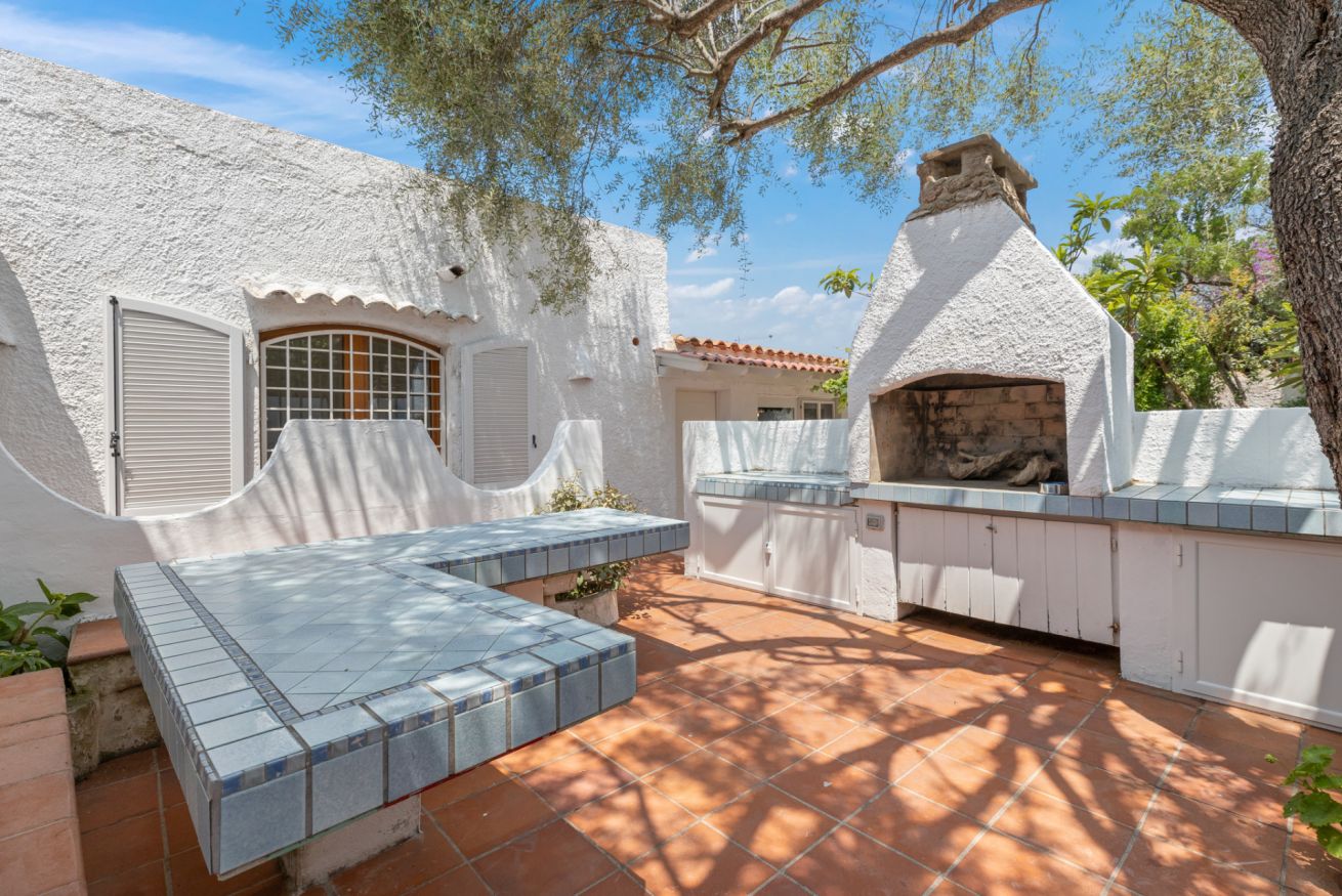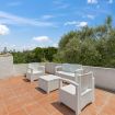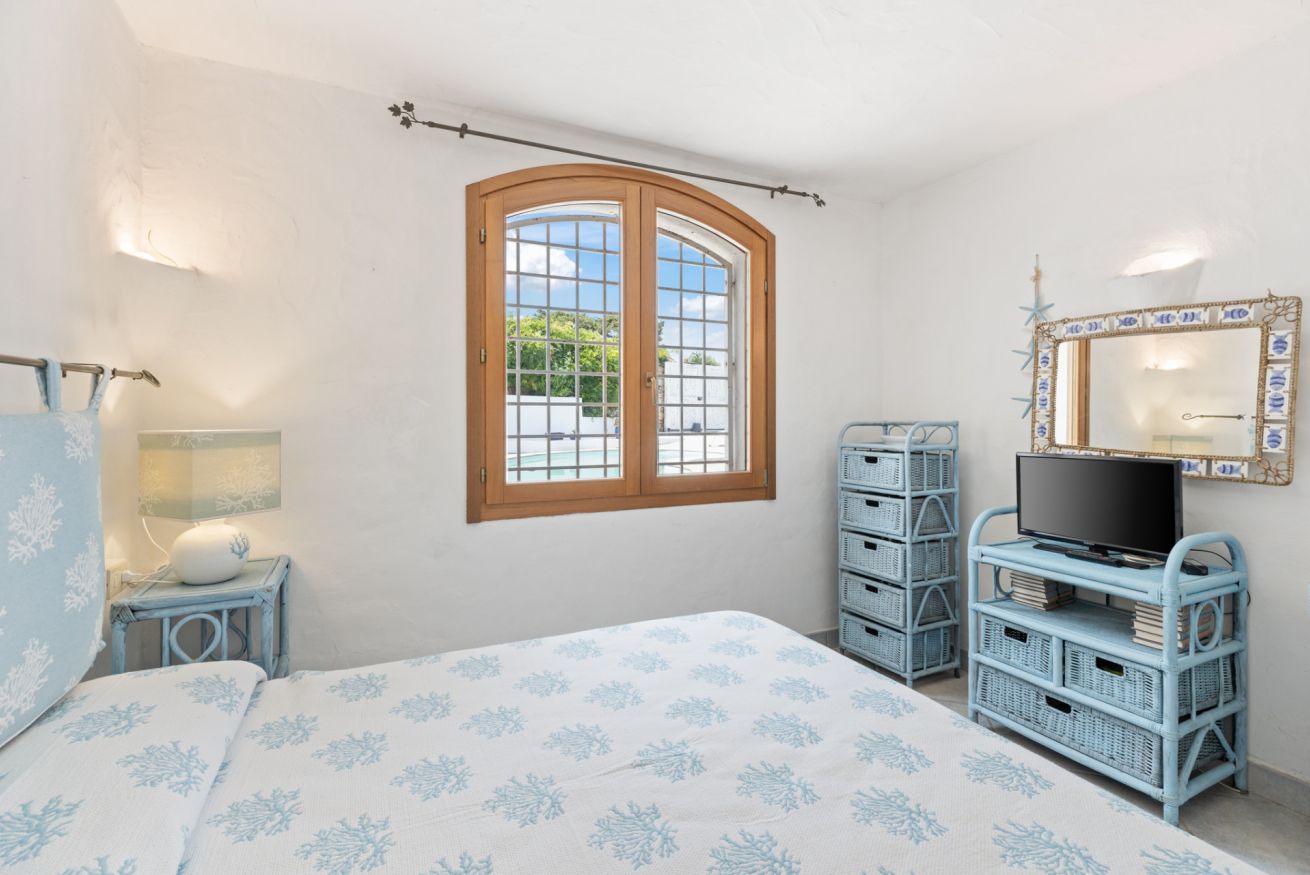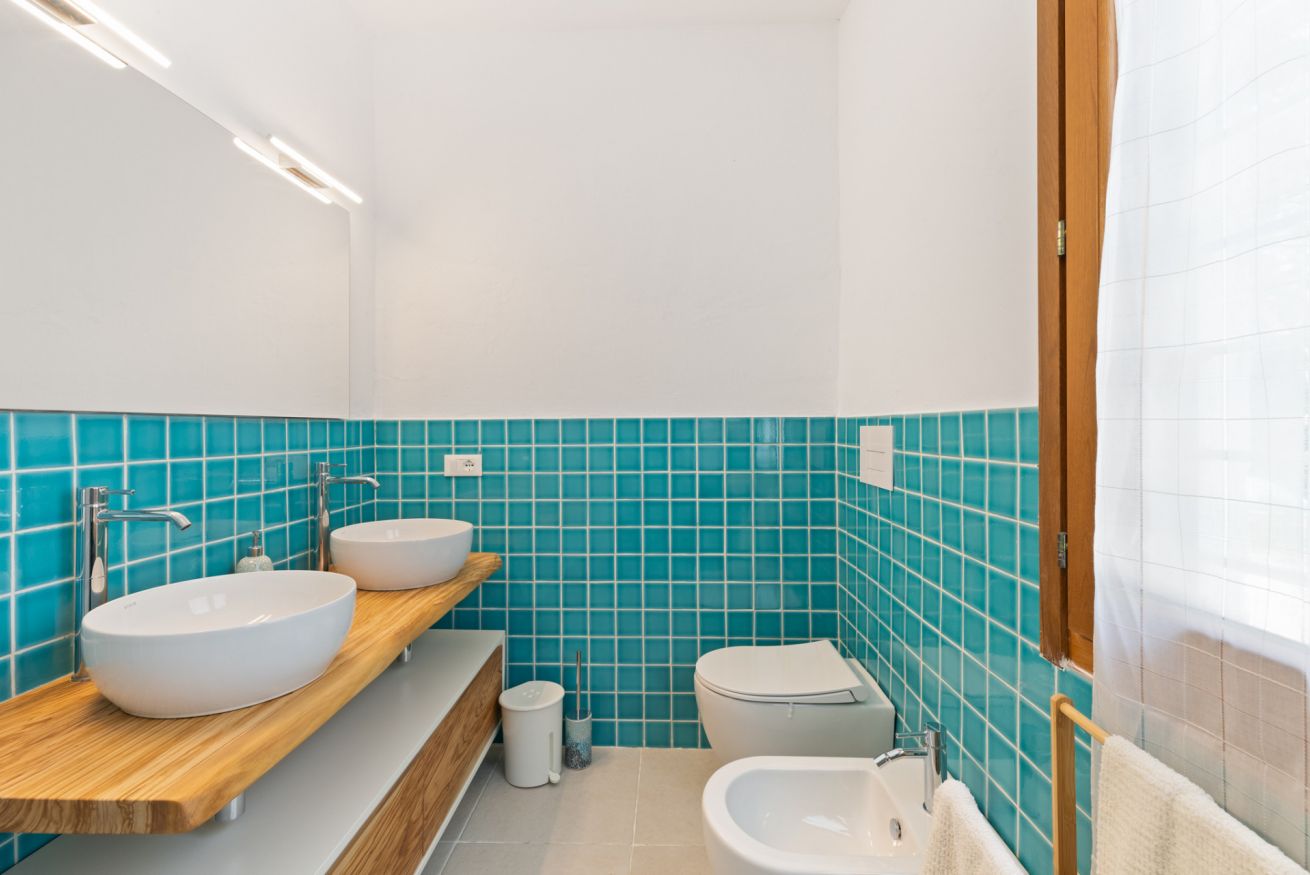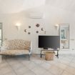 This fully independent villa offers spacious, bright interiors, ideal for families or groups of friends. The four bedrooms are tastefully furnished and equipped with every comfort: two double bedrooms with air conditioning and TV—one of which features an en suite bathroom; a third double bedroom with private bathroom and TV; and a fourth bedroom with bunk beds and its own bathroom. The villa also features a large living room with comfortable sofas, a dining area, air conditioning, and TV, along with a modern fully equipped kitchen including an induction hob, oven, dishwasher, coffee machine, and kettle. The interiors are completed by three elegant and functional bathrooms with showers, plus an additional guest bathroom.